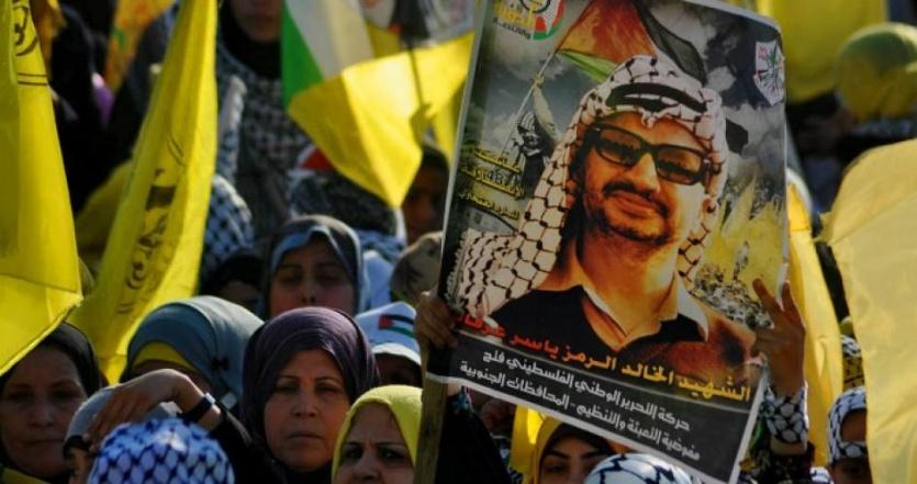 ناشطات من حركة فتح يرفعن صورة الرئيس الراحل ياسر عرفات في فعالية للحركة بغزة- أرشيفية