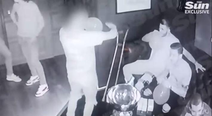 ويظهر في الفيديو، الذي نشرته صحيفة "ذا صن" البريطانية بشكل حصري، وصورته كاميرا المراقبة، كل من ألكسندر لاكازيت (27 عاما) وماتيو غندوزي (19 عاما) ومسعود أوزيل (30 عاما) وبيير أوباميانغ (29 عاما)، وآخرون، حول مائدة ممتلئة بزجاجات شامبانيا وفودكا.