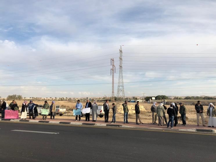 وشارك في الوقفة أيضا النائب عن القائمة المشتركة، سعيد الخرومي، وعدد من الناشطين في النقب، ورفعوا الشعارات المنددة بالسياسة العنصرية وهدم المنازل العربية.