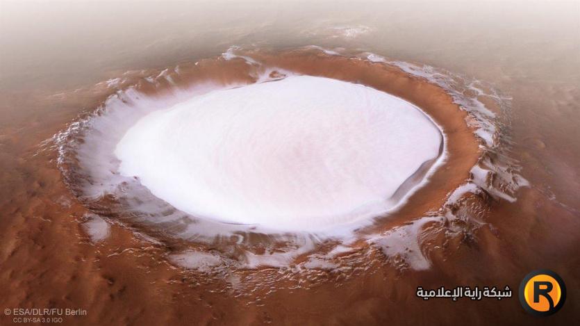 التقط المسبار "مارس-إكسبريس"، صورا فريدة لفوهة كوروليوف المليئة بالمياه المتجمدة الواقعة على مقربة من القطب الشمالي للمريخ.