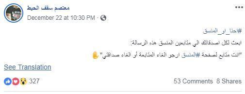 وأضاف ان هدفهم هو مواصلة الحملة ومضاعفتها للوصول إلى تأثير فعلي في عدد متابعي الضفحة وانقاصهم.