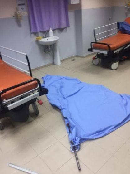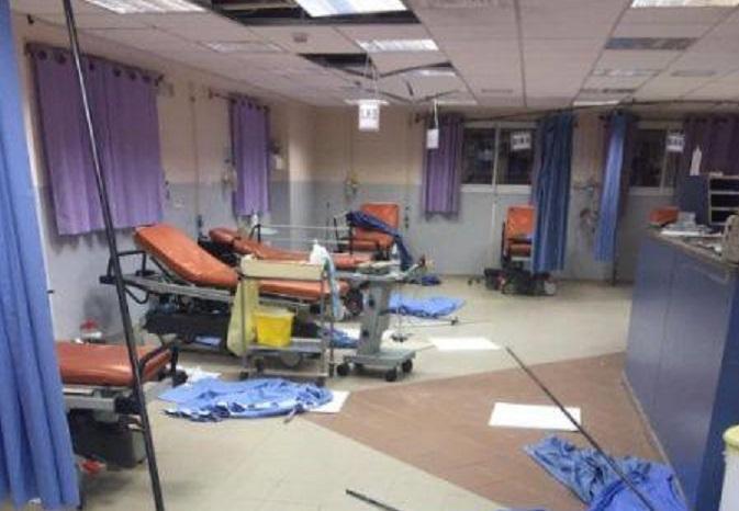 آثار الاعتداء على قسم الطوارئ في مجمع فلسطين الطبي