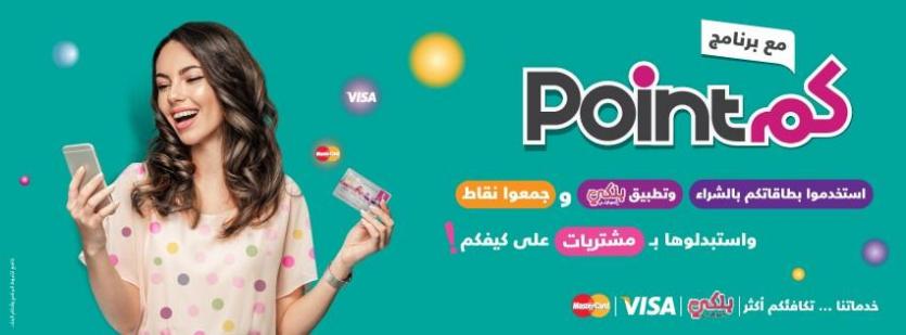 وتمنح نقاط برنامج "بونتكم – PointCom للعملاء عند استخدامهم لخدمات البنك الالكترونية أو تطبيق "بنكي ع موبايلي"، وعند استخدام بطاقات البنك في عمليات الشراء والتسوق. وبعد تجميع النقاط يمكن لعملاء البنك استبدالها بسلع مختلفة من مئات المتاجر المنتشرة في كافة المدن التي تم التعاقد معها من جانب البنك لتسهيل عملية استبدال النقاط التي جمعها العملاء.