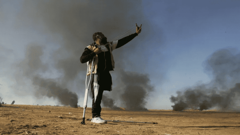 شاب مبتور القدم يشارك في مسيرات العودة