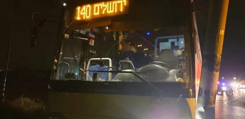 آثار تعرض حافلة مستوطنين لإطلاق نار قرب رام الله