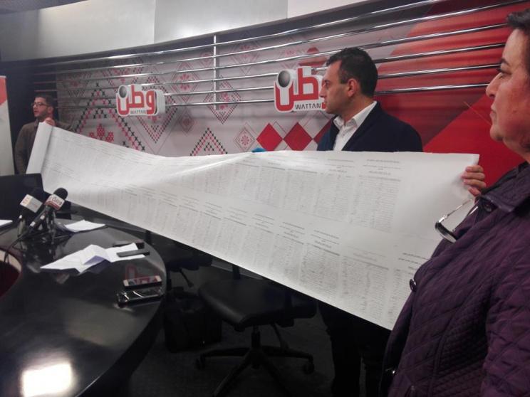 عرض التوقيعات التي تم جمعها خلال مؤتمر صحفي