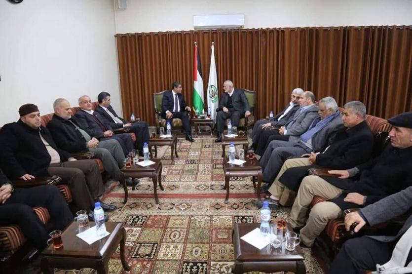 بحثت حركة "حماس" مساء الخميس، ملف تفاهمات تثبيت وقف إطلاق النار في غلاف غزة، والمصالحة الفلسطينية، مع وفد المخابرات المصرية الذي ضم وكيل المخابرات اللواء أيمن بديع، واللواء أحمد عبد الخالق مسؤول الملف الفلسطيني في المخابرات المصرية.