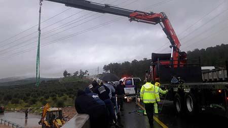 وفي التفاصيل، ان الطاقم أنقذ امرأة وطفل من داخل السيارة وعالق آخر ثالث وجد هناك تمّ إنقاذه بواسطة رافعة في منطقة تسمى "وادي المجنونة".