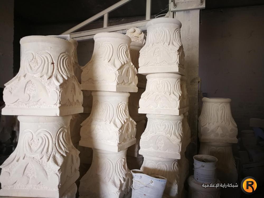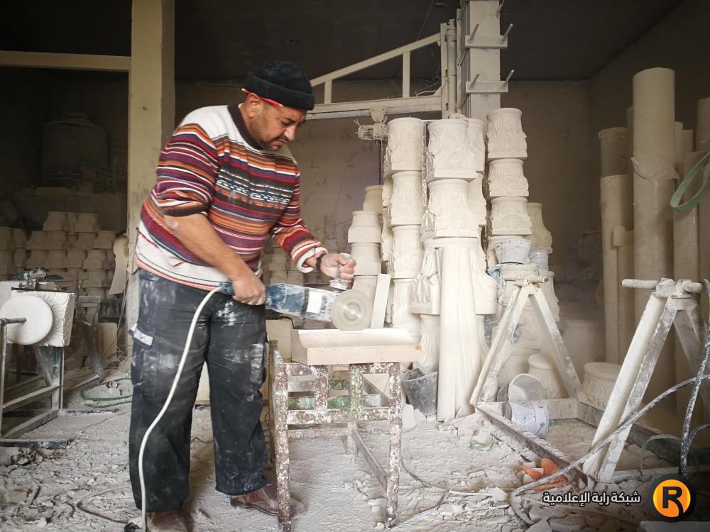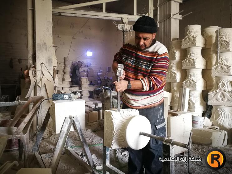 في المنطقة الصناعية بالخليل؛ تسللنا لمساحة تعجّ بالغبار المتدفق من إطار صاروخ كهربائي يمسكه مزخرف حجر بيديه القويتين ليحفّ الحجارة، حاولنا بعثرة بعض الغبار ليتسنّى لنا رؤية ذلك الإنسان، فلم نرَ أكثر من عينيه، وباقي جسده ذو البشرة السمراء تلفظه غبار الحجر حتى أصبح أبيضًا، حينها سألناه عمّا يجبره على ذلك؟ فقال :"هنا تجتمع المتعة مع التعب، والأجر على قد المشقة".