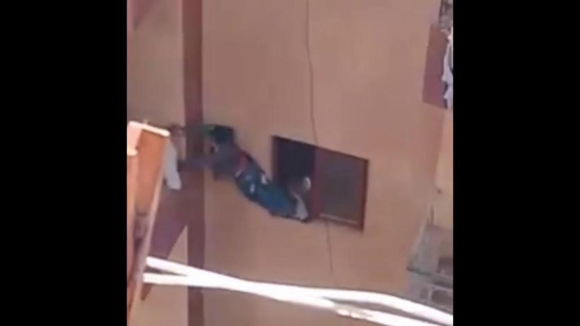 ام تجبر طفلها على التسلق خارج "البلكونة"