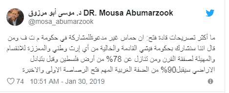 وختم أبو مرزوق، تغريدته بالقول: "المهم فتح الرصاصة الأولى والأخيرة".