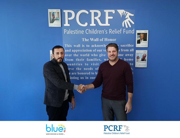بعد فوزها بعطاء تطوير الموقع الإلكتروني الخاص بالجمعية، وقعت شركة بلو الأربعاء ممثلة بمديرها العام مهند الحاج يوسف اتفاقية تطوير ودعم فني طويلة الأمد مع جمعية إغاثة أطفال فلسطين (PCRF) ممثلة برئيسها التنفيذي ستیف سوسبي في مقر الجمعية في رام الله.