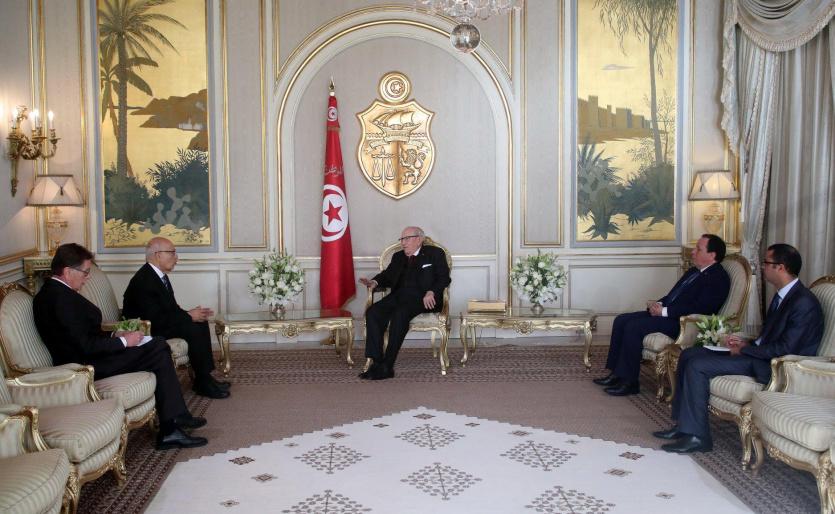 وجدد الرئيس السبسي، تأكيده على "استعداد تونس للتعاون مع الأشقاء الفلسطينيين ودعم مطالبهم المشروعة لبناء دولتهم المستقلة وعاصمتها القدس الشريف".