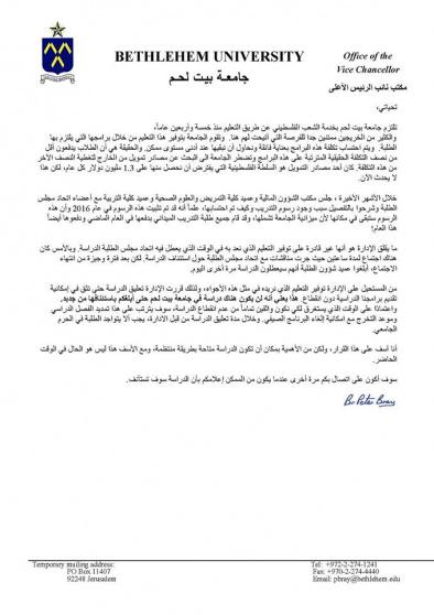 جامعة بيت لحم تعلق الدراسة حتى إشعار آخر