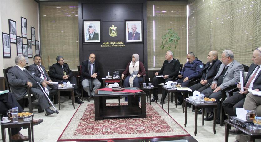 جاء ذلك خلال لقاء عقد اليوم الإثنين في مقر المحافظة، وضم وكيل وزارة العمل سامر سلامة، ورئيس بلدية رام الله موسى حديد، و رئيس بلدية البيرة عزام إسماعيل، ورئيس بلدية بيتونيا ربحي دولة، ومدير شرطة المحافظة العقيد طارق الحاج، والعقيد سامي حمدان ممثلاً عن جهاز الدفاع المدني، ومدير عام مؤسسة المواصفات والمقاييس حيدر حجة، و ممثلين عن نقابة المهندسيين.