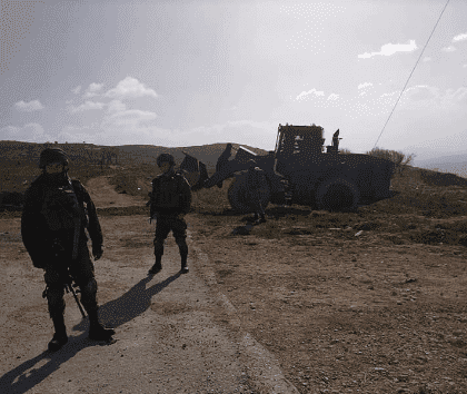 جرفت قوات الاحتلال، اليوم الجمعة، اراض في قرية عوريف جنوب نابلس.