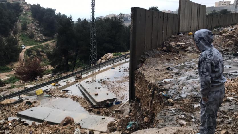 تسببت الأمطار الغزيرة، بانهيار مقاطع من جدار الضم والتوسع العنصري في مخيم شعفاط بمدينة القدس.