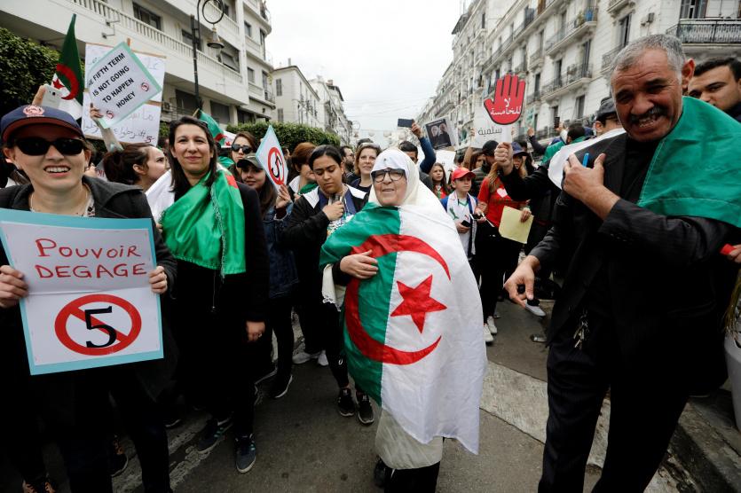 وتشهد الجزائر، منذ أسابيع، مظاهرات حاشدة ينظمها محتجون ضد الفساد والبطالة وطبقة حاكمة يهيمن عليها الجيش والمحاربون القدامى.