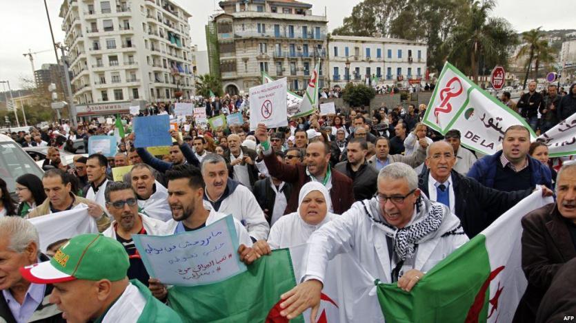 وخرج مئات الآلاف من الجزائريين إلى الشوارع منذ اندلاع الاحتجاجات السلمية قبل شهر.
