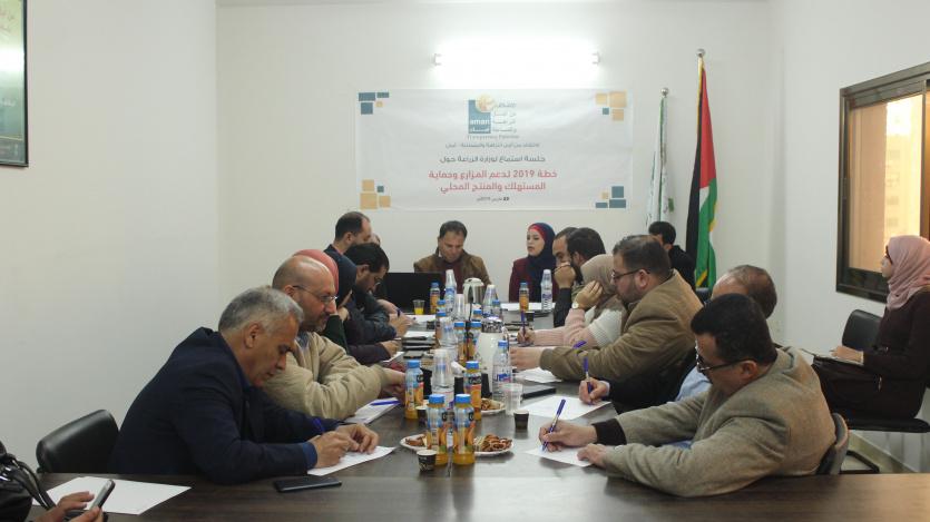 وتطرقت الجلسة في مضمونها لأهم متطلبات دعم المزارعين، ومنها: وجود نظام للتأمين الزراعي، وتعويض المزارعين ضد الكوارث الطبيعية، حيث لا يزال المزارع في الأراضي الفلسطينية يعاني من غياب أنظمة تأمين على الإنتاج الزراعي، وتعويض المزارعين ضد الكوارث الطبيعية التي أدت إلى تدني الوضع الاقتصادي لدى كثير من المزارعين، وعزوفهم عن العمل في القطاع الزراعي. كما وتمت المطالبة أيضا برفع نسبة موازنة القطاع من موازنة الحكومة لتصل إلى 15%، إضافة إلى تفعيل آلية التواصل بين المزارع ووزارة الزراعة من خلال عقد لقاءات دورية للاطلاع على مشاكل المزارعين، ومعرفة ما استجد عليهم في كافة الأصعدة لإيجاد الحلول اللازمة، وتصميم السياسات الزراعية من قبل وزارة الزراعة من خلال نهج الشراكة مع المجتمع المدني، والمزارعين من خلال إشراكهم في التخطيط، ووضع السياسات وتصميم الخطط الإستراتيجية والموازنات والمشاريع، كما أن التأثير على سياسات الممولين لجذب تمويل أكبر لقطاع الزراعة وفق الخطط التي أعدت مسبقا بعد الحرب على قطاع غزة، من خلال تعويض المزارعين عن الأضرار التي لحقت بهم من خلال تفعيل صندوق درء المخاطر، وتنفيذ مشاريع لتنمية القطاع الزراعي على المدى البعيد والمتوسط.