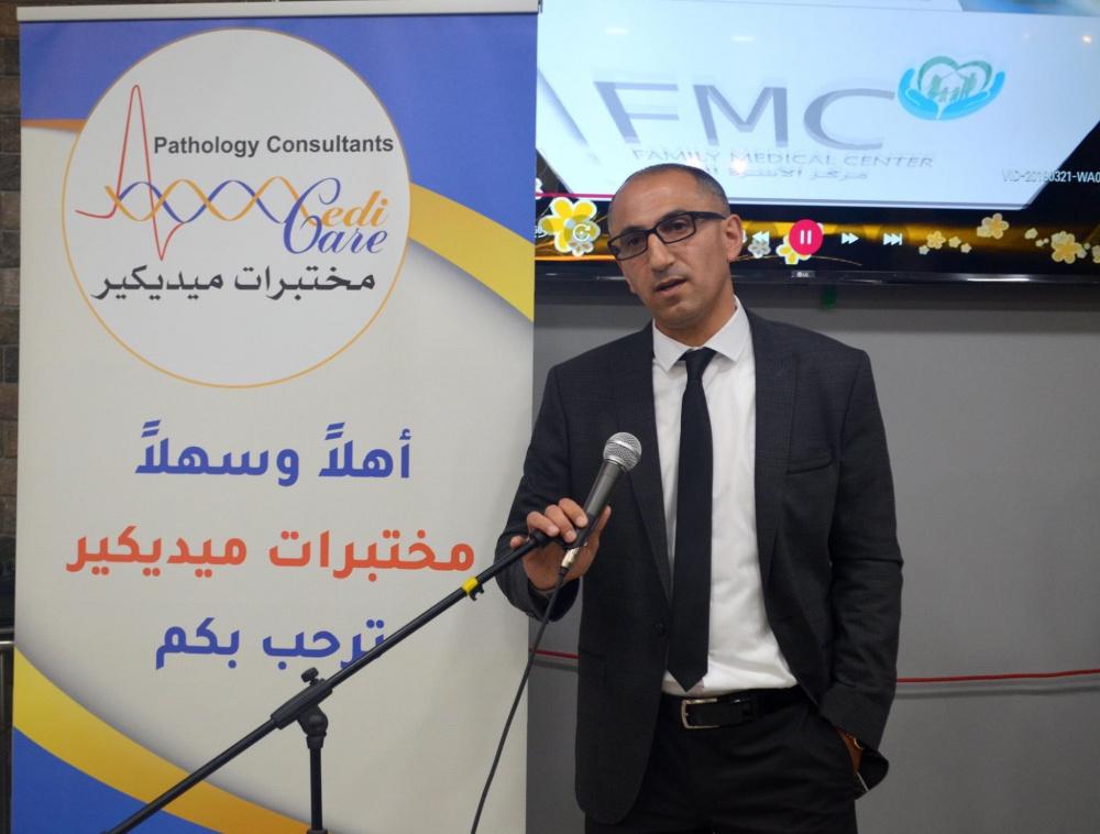 ورحب مدير عام مختبرات ميديكير الدكتور بشار الكرمي في كلمة له؛ بالحضور وشكر اهالي محافظة الخليل ومدينة الظاهرية على حضورهم حفل الافتتاح.