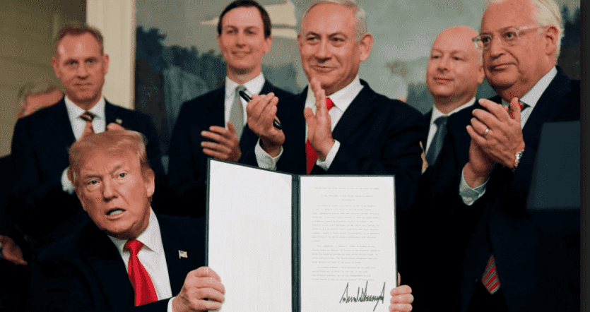 وأضاف أن الإبقاء على القوة لن يكون متوافقا مع السياسة الأميركية الجديدة التي تنسب هذه الأرض إلى إسرائيل.