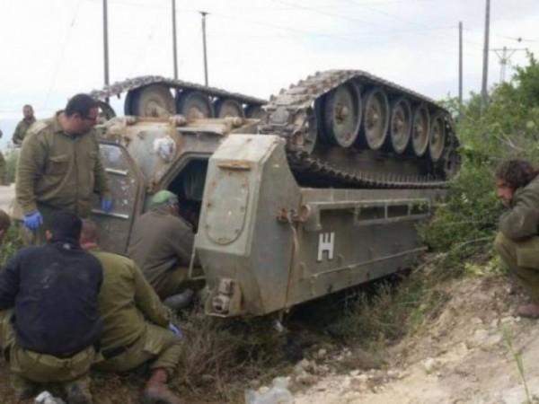 وأكدت القناة 13 العبرية أن ناقلة جند مدرعة سقطت من شاحنة نقل عسكرية كانت متوجهة لغلاف غزة.