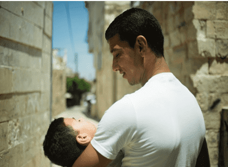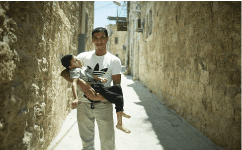 يصطحب سامر ابنه يامن معه عند الخروج من المنزل عند لقائه مع أصدقائه، وعلى الرغم من بتر قدمه يحمل يامن بين يديه أينما ذهبوا.