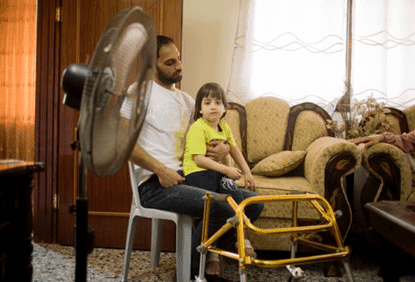 يقول سامر: "في الصباح الباكر، أخرج إلى البقالة وأجمع كل ما نحتاجه في المنزل ثم أعود لرعاية يامن وأغير ملابسه وأحضر له أنبوبة الأكسجين إذا احتاج الأمر، ثم اَخذه للتنزه في الحيّ".