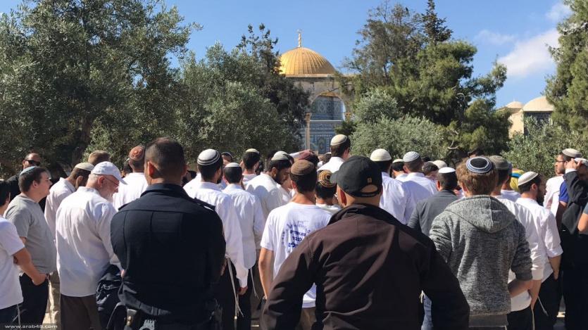 اقتحم 56 مستوطنا، الخميس، المسجد الأقصى المبارك من باب المغاربة، وتجولوا في باحاته ومرافقه، بحراسة مشددة من قوات الاحتلال.