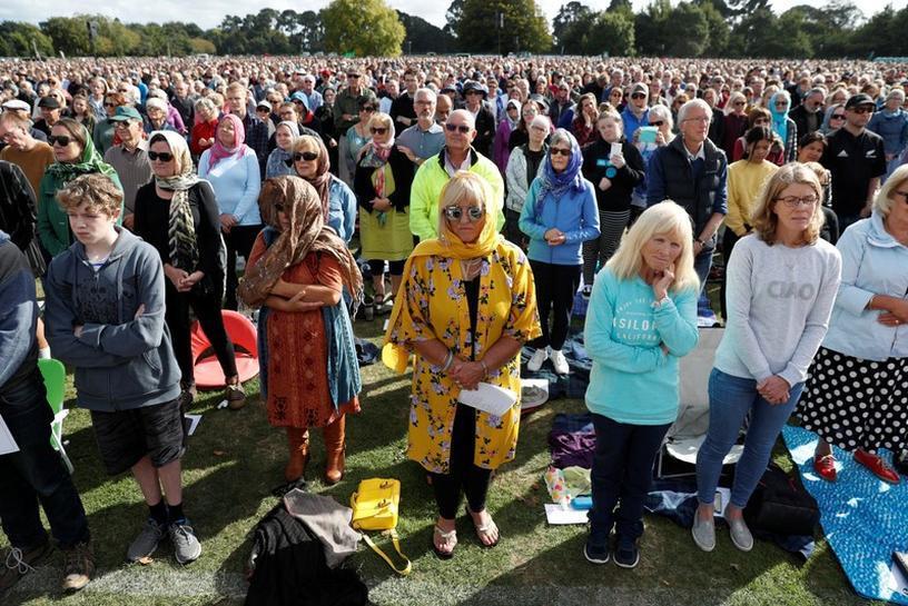 التزم الآلاف الصمت وهم وقوف في متنزه عام بمدينة كرايستشيرش في نيوزيلندا اليوم الجمعة أثناء تلاوة 50 اسما ارتقى أصحابها بالرصاص في مسجدين بالمدينة، وذلك خلال مراسم تأبين دعا المتحدثون فيها لأن تخرج البلاد من المأساة وهي تتحلى بقدر أكبر من الطيبة والتسامح.