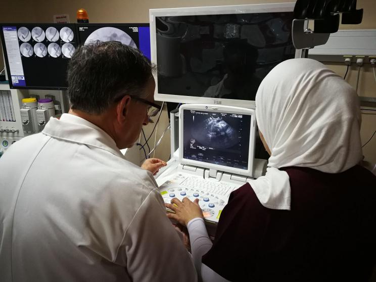 "قمنا بتجهيزه واضافه خدمة نوعية متميزة أعتقد أنها الأولى في فلسطين وليست في مستشفى الأهلي فقط وهي "Endoscopic Altrasound" جهاز التصوير التلفزيوني الداخلي من خلال المناظير الذي يستخدم في عدة أمور طبية " قال الأشهب، متابعًا "من أهمها تشخيص الأورام الداخلية مثل البنكرياس، تقييم الورم في الخلايا اللمفاوية، الحصول على التشخيص دون عملية جراحية، التخلص من بعض السوائل دون عمليات جراحية".