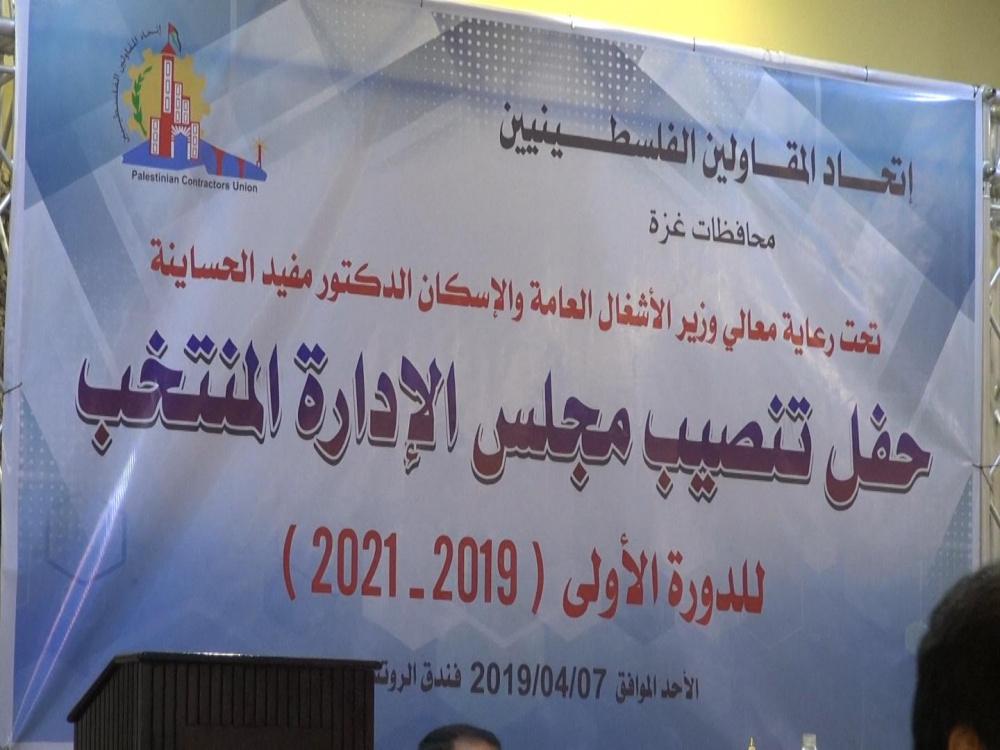 خلال تنصيب مجلس الإدارة المنتخب وجه رئيس مجلس الإدارة رسالة عتاب للبنوك العاملة في قطاع غزة جراء عدم مراعاتها للظروف الاقتصادية الصعبة التي يمر بها المقاولين.