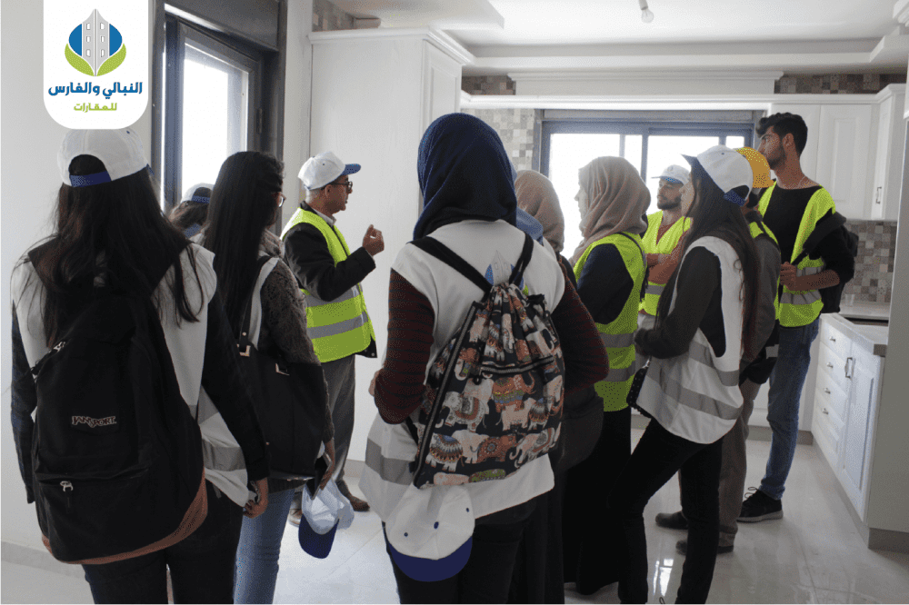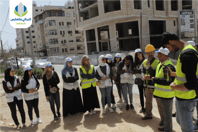 استقبلت شركة النبالي والفارس للعقارات وفداً طلابياً من كلية الهندسة المعمارية في جامعة بيرزيت وذلك للاطلاع عن كثب على المشاريع العقارية التي تنفذها الشركة، لاسيما من النواحي الهندسية والإنشائية.