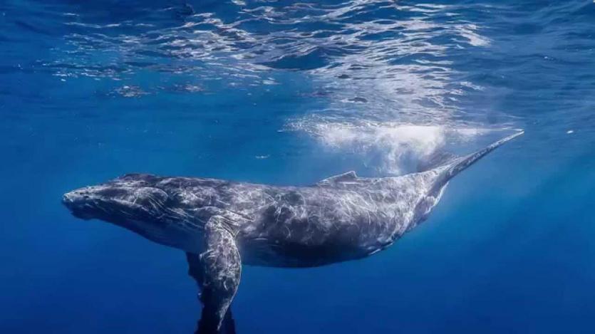 بالفيديو.. حوت كبير يظهر على شواطئ غزة