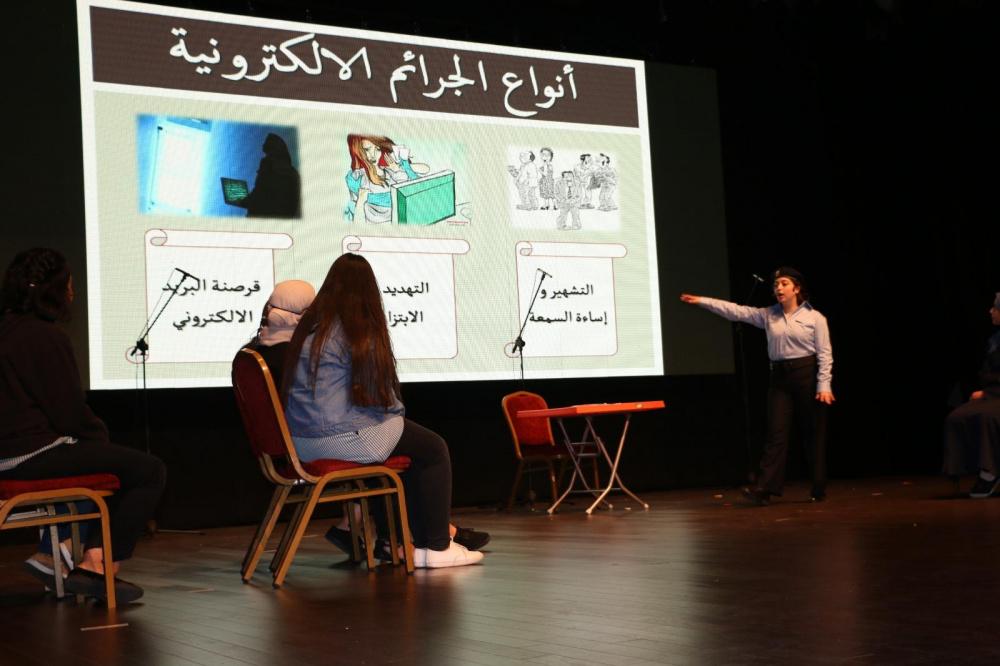 واضاف البيان، ان هذه المشروع يهدف الى توعية الطلاب والطالبات من الوقوع فريسة للجرائم الالكترونية، وكيفية التعامل والوقاية في حال التعرض الى اي جريمة الكترونية والتوجه الى الشرطة حتى تتمكن الطواقم المختصة من التعامل معها، اضافة الى الحديث حول كيفية التعامل مع مواقع التواصل الاجتماعي ومواقع الانترنت، وكيفية استغلالها بما يعود علينا بالفائدة العلمية والاجتماعية، ويذكر ان المسرحية من تأليف وليد الهودلي واخراج رباح الكالوني.