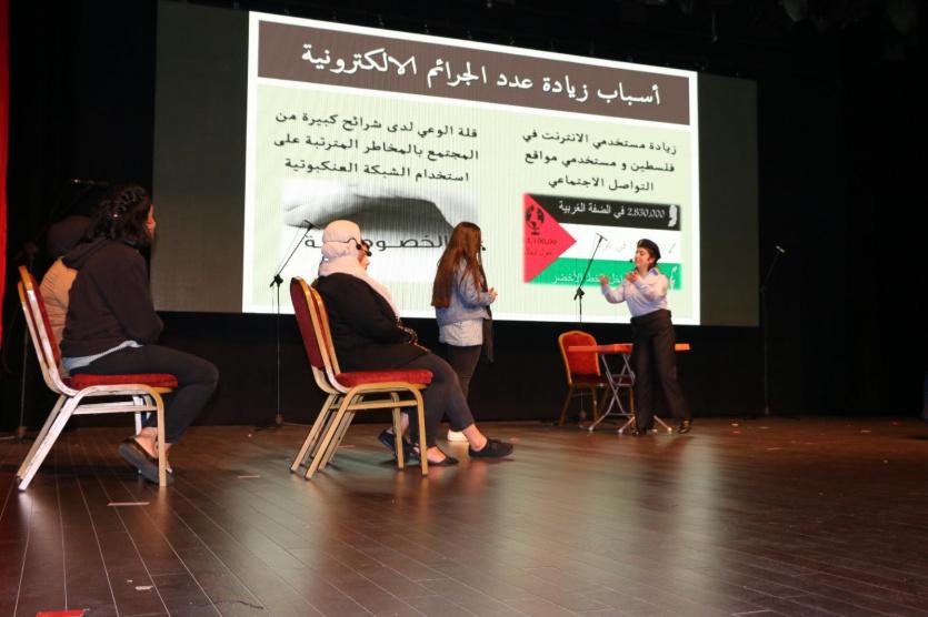 اطلقت وزارة التربية والتعليم والمديرية العامة للشرطة اليوم الأربعاء، المسرحية التوعوية دوت كوم"com . " لطالبات مدرسة بنات عزيز شاهين الثانوية والتي تتناول موضع الجرائم الالكرتونية وذلك في مسرح الهلال الاحمر في البيرة .