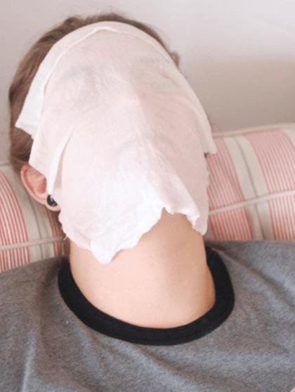 بما أن الخليط سيكون سائلاً، لذلك يفضل استخدام قطعة مناسبة من القماش، وغمسها في المحلول، قبل تطبيقها على الوجه، وتركها 15 دقيقة.