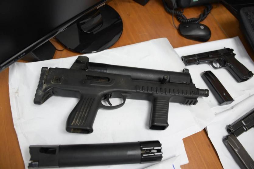 وزعمت الشرطة أنه خلال التفتيش تم ضبط 31 مسدسا من أنواع مختلفة وكذلك رشاش أوتوماتيكي غير قانوني.