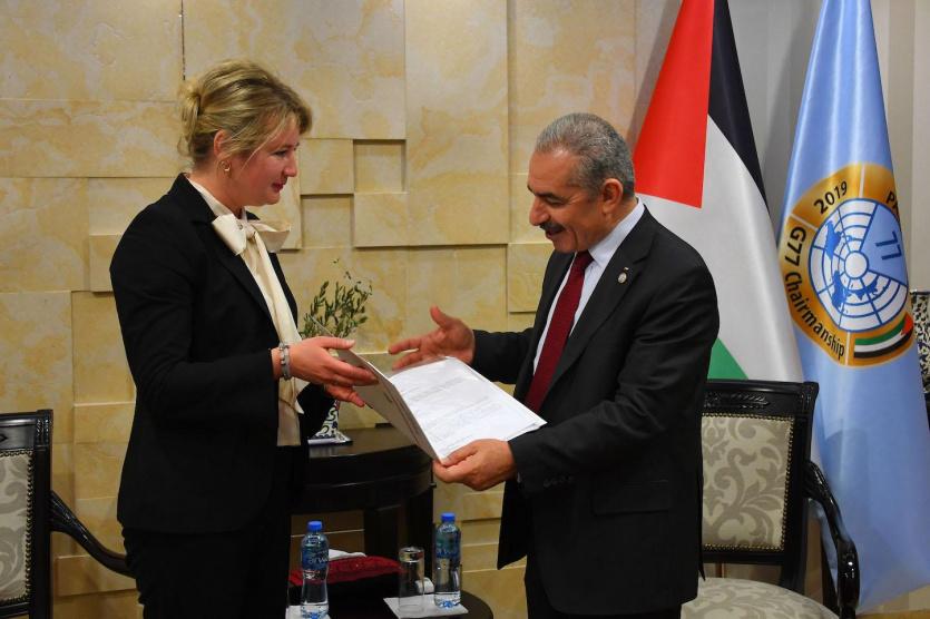وتسلم اشتية، من ممثلة بولندا، رسالة تهنئة من رئيس الوزراء البولندي ماتيوس مورافيسكي، لمناسبة توليه منصبه.
