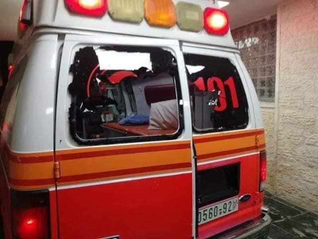 مركبة الاسعاف التي تضررت من الاعتداء