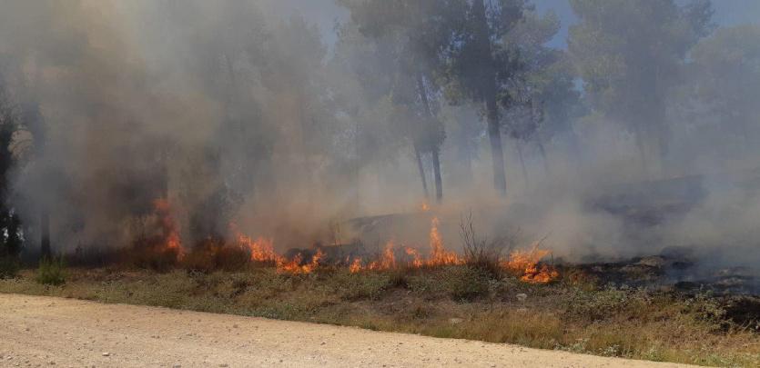 وقالت إن 4 فرق إطفاء تكافح الآن للسيطرة على الحريق الكبير الذي اندلع بين "كيبوتس أوريم ومتنزه إشكول" بفعل بالونات حارقة من غزة.