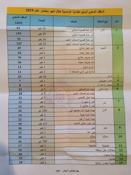 اصدرت وزارة الاقتصاد الوطني، اليوم الخميس، قائمة الأسعار الاسترشادية للسلع الغذائية الأساسية، والتي تمثل الأكثر استهلاكا في سلة المستهلك، خلال شهر رمضان.