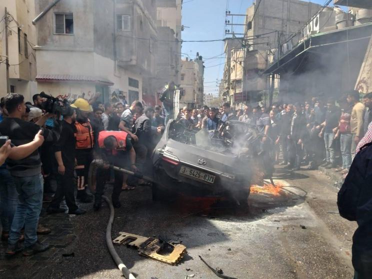 - ارتقاء الشهيد حامد أحمد الخضري بعد قصف الاحتلال سيارة مدنية على مفترق السدرة شرق غزة.