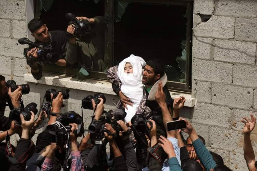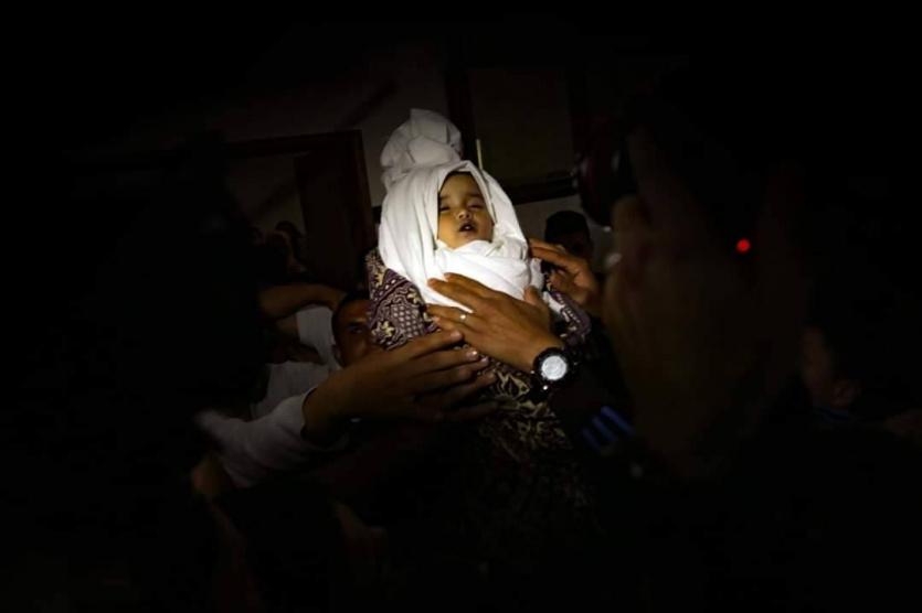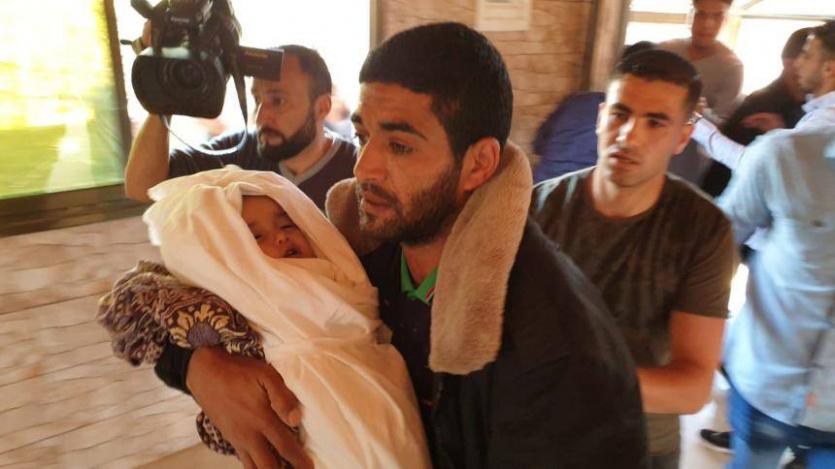 شيعت جماهير غفيرة في غزة جثمان الشهيدة الطفلة صبا أبو عرار "عام ونصف" التي ارتقت مساء أمس في قصف إسرائيلي.