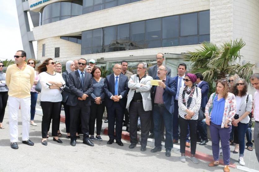 نظمت وزارتا الثقافة والإعلام، اليوم الاثنين، وقفة أمام مقر الأمم المتحدة في رام الله، تنديداً بالعدوان الإسرائيلي على أبناء شعبنا في قطاع غزة، وجريمة هدم مركز عبد الله الحوراني للدراسات والأبحاث.