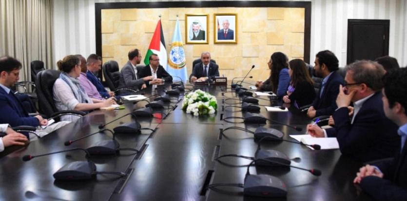 رئيس الوزراء محمد اشتية خلال لقائه كتاباً أمركييين