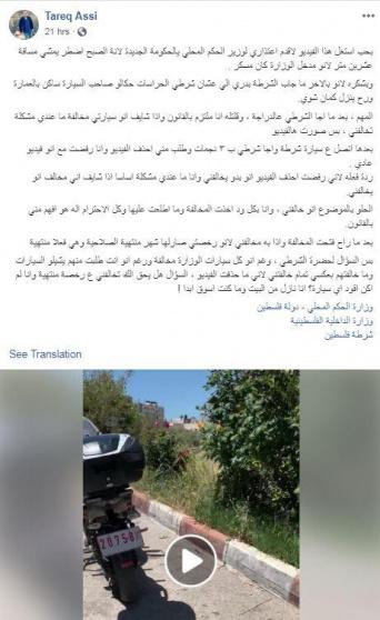 الشاب طارق عاصي اشتكى عبر صفحته في فيسبوك، لوزير الحكم المحلي بسبب اغلاق مدخل الوزارة صباحا وعدم تمكنه من الخروج من موقف البناية السكنية التي يقطن فيها.