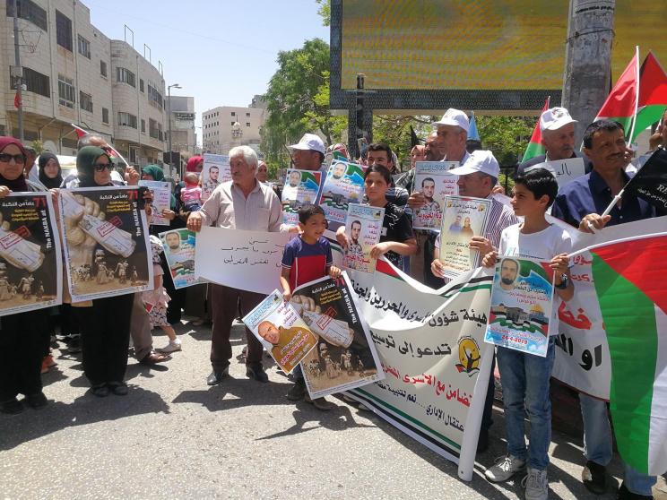 نظمت هيئة شؤون الأسرى والمحررين وقفة تضامنية مع الأسرى الإداريين المضربين عن الطعام، اليوم الأربعاء، في الخليل.