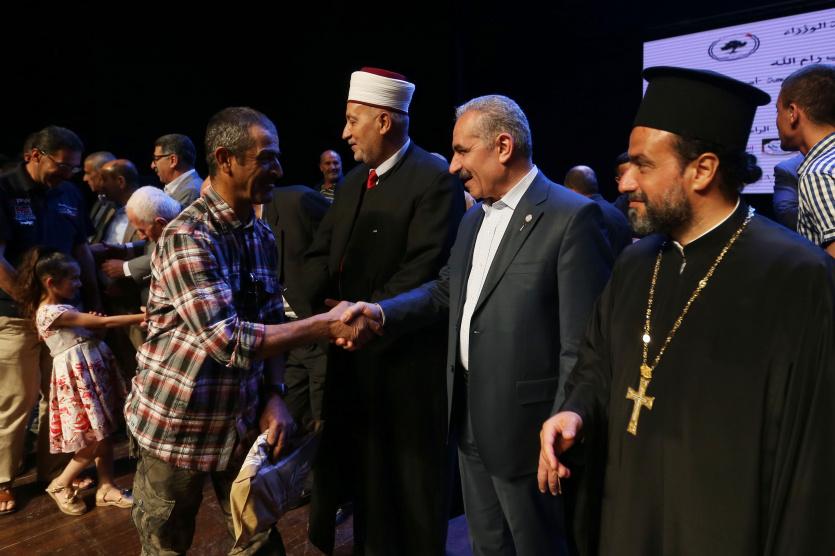 كرّم رئيس الوزراء محمد اشتية، امس الخميس بمدينة رام الله، عمال وموظفي قسم الصحة "أصدقاء البيئة"، في بلديات رام الله والبيرة وبيتونيا، وذلك خلال حفل نظمه نادي شباب رام الله.